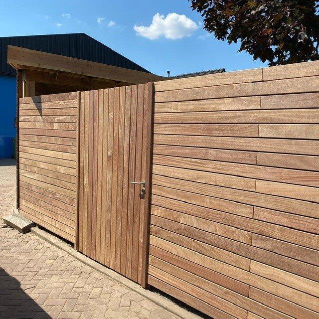 "Strakke eenheid in de achtertuin: Schutting en poort van hetzelfde Ipé-hout!" ⭐⭐⭐⭐★ 4,5/5. " Wat dit project echt afmaakt, is dat ik met exact dezelfde planken ook de poort heb gebouwd. Hierdoor loopt het lijnenspel naadloos door en vormt de gehele erfafscheiding één prachtig, rustig geheel. Het Ipé-hout laat zich ondanks de hardheid goed verwerken en de smalle plankbreedte geeft een heel verfijnde, moderne uitstraling. Een absolute aanrader voor wie van een strak design houdt!" – De heer van Veen, Eindhoven
