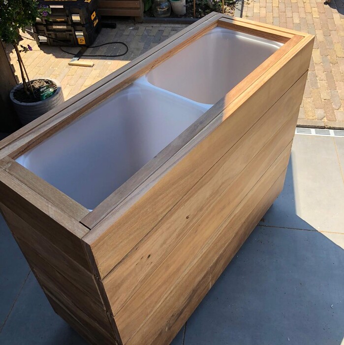 "Plantenbak van resthout gemaakt" ⭐⭐⭐⭐★ 4,2/5. "Tijdens het transport waren er een aantal vlonderplanken beschadigd. Dit is prima opgelost door Hardhout Discount. Ik heb extra Ipe vlonderplanken nageleverd gekregen, en mocht de beschadigde planken houden. Hiervan heb ik een plantbak gemaakt. Dit is goed gelukt. Ik ben zeer tevreden over de afhandeling, maar kan jullie door dat er wat is mis gegaan geen 5 sterren geven." – Mark Dintel, Den Haag