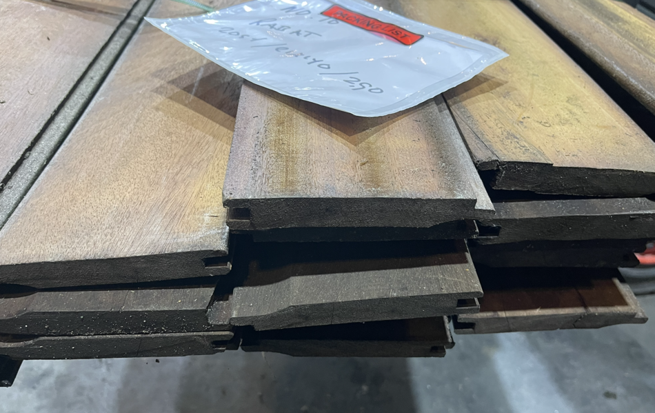 Als je geld wil besparen dan koop je deze vlonderplanken, nog steeds van het mooie IPE hout, maar dan wel met een foutje. Zaag het foutje uit je plank door deze af te korten. Of schuur de planken op, om ze weer mooi te krijgen.