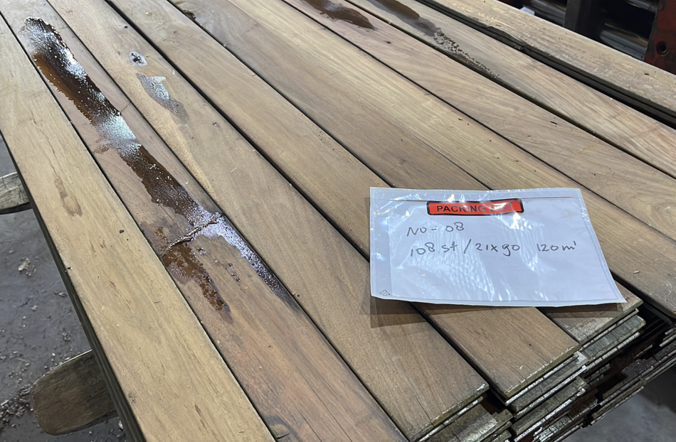 Als je geld wil besparen dan koop je deze lamellen, nog steeds van het mooie IPE hout, maar dan wel met een foutje. Zaag het foutje uit je plank door deze af te korten. Of schuur de planken op, om ze weer mooi te krijgen.